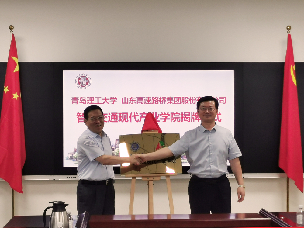 9月26日,由公司與青島理工大學(xué)共同建設(shè)的智慧交通現(xiàn)代產(chǎn)業(yè)學(xué)院成立暨揭牌儀式在青島理工大學(xué)舉行。山東高速集團(tuán)總工程師、山東路橋黨委書記、董事長(zhǎng)周新波,青島理工大學(xué)黨委副書記、校長(zhǎng)譚秀森共同為智慧交通現(xiàn)代產(chǎn)業(yè)學(xué)院揭牌。