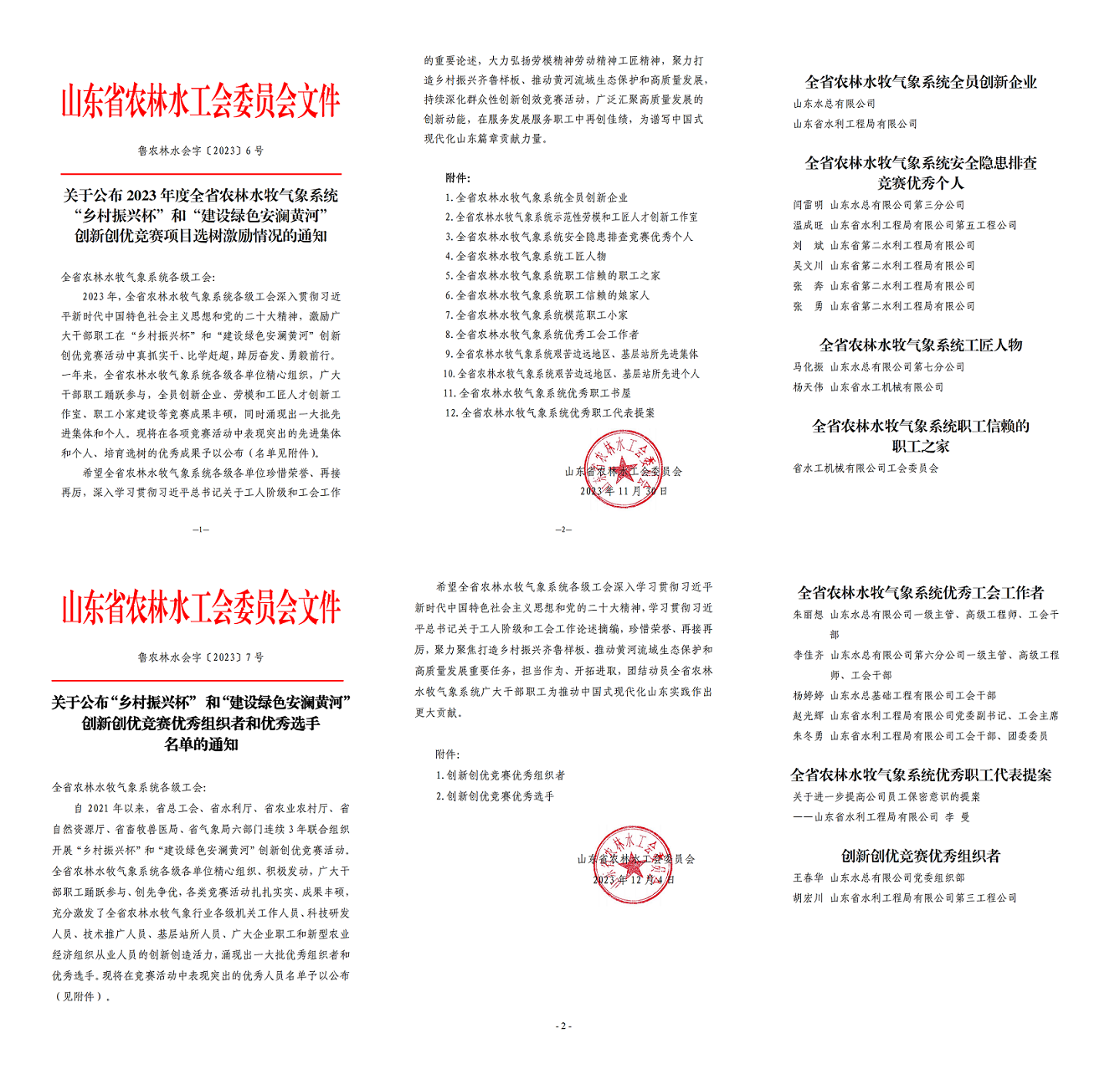 山東水總、山東水局獲山東省農(nóng)林水牧氣象系統(tǒng)“鄉(xiāng)村振興杯”創(chuàng)新創(chuàng)優(yōu)競賽多項榮譽(yù)